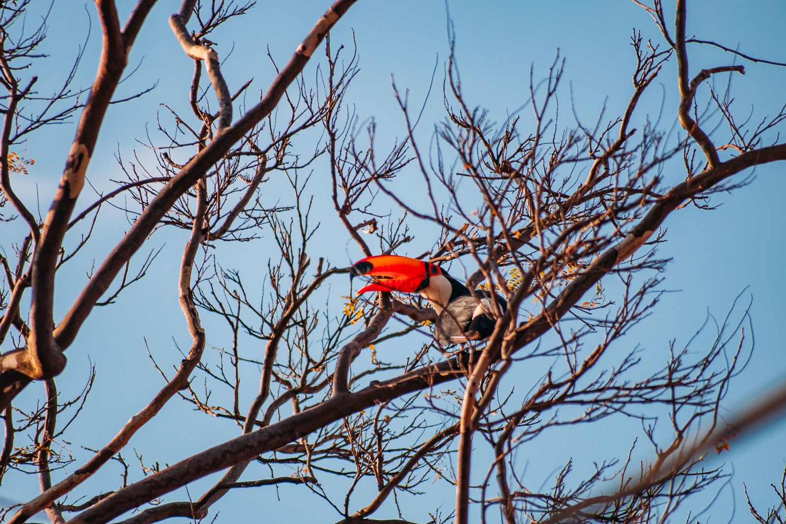 Além disso, há muitos anfíbios que povoam as águas e solos da Amazônia. São sapos, rãs e pererecas de diversos tamanhos e cores. No céu, podemos encontrar grande variedade de aves, como tucanos, periquitos, araras-vermelhas, uirapurus etc. No entanto, o número maior de espécies fica a cargo dos artrópodes (que englobam, principalmente, insetos, aracnídeos e crustáceos), estima-se que são 2,5 milhões de espécies. Ou seja, ao caminhar pela floresta, certamente você irá se deparar com esses bichos de todo tipo, nas mais variadas cores e tamanhos. É uma infinidade de besouros, borboletas, mariposas, formigas, aranhas, moscas, abelhas, vespas etc.⁵