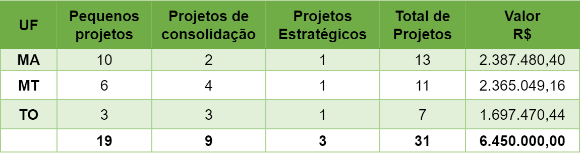 Foram 31 projetos selecionados que, ao todo, receberão R$ 6,45 milhões, recurso proveniente do Fundo Amazônia.