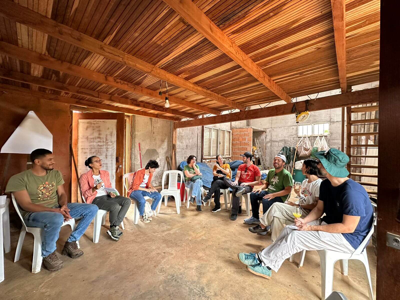 O edifício está localizado em uma área comunitária dentro do assentamento. “A gente está cuidando do cerradinho que sobrou, restaurando e plantando mais Cerrado. Com essa força, a gente segue com o trabalho de agroecologia no assentamento, com perspectiva de que a juventude possa assumir a gestão e fazer restauração”, explica Vinicius.