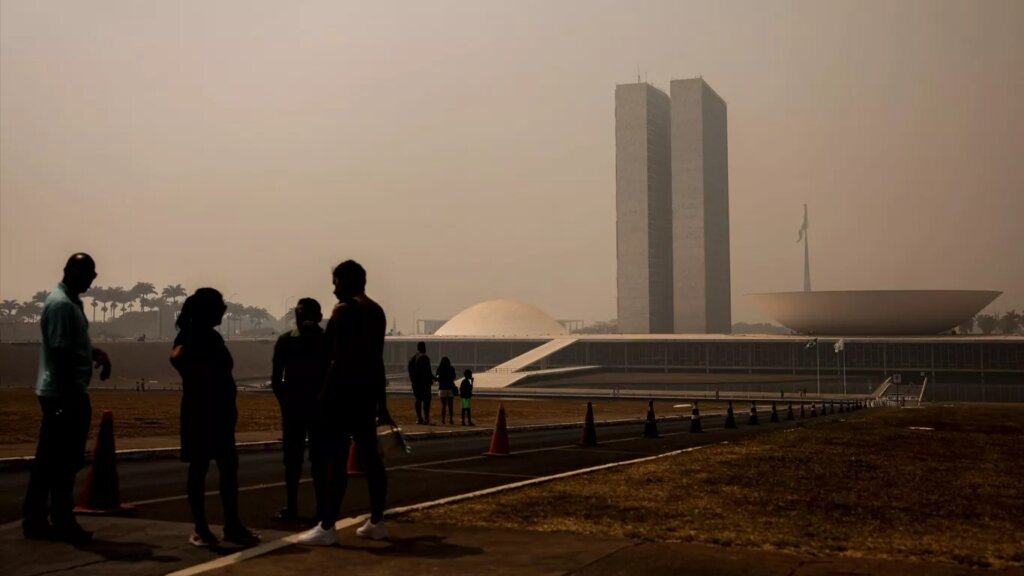Brasília amanheceu coberta pela fumaça de incêndios nesta segunda-feira (26/08)
