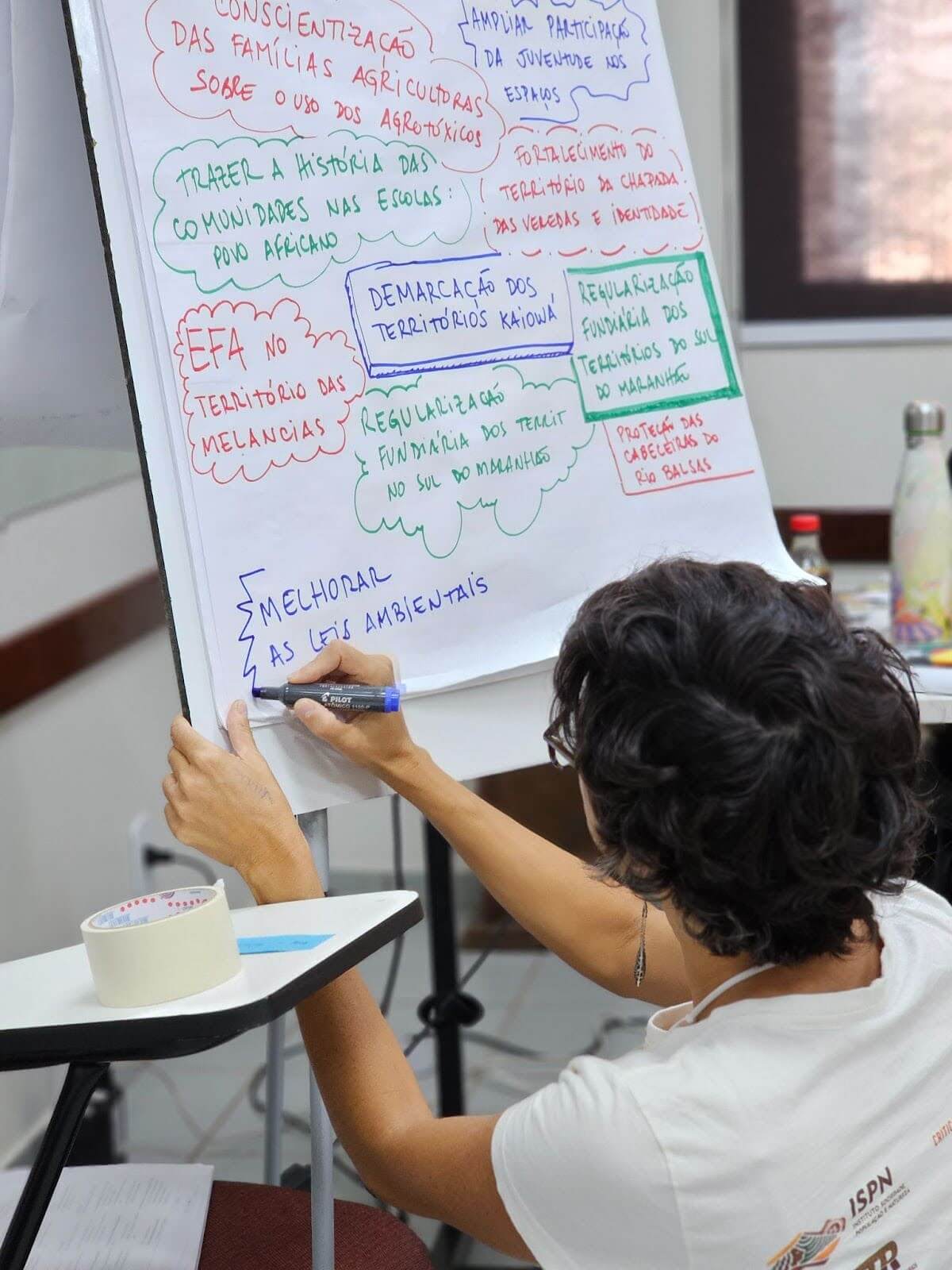 Parte da programação do encontro, o assessor de Advocacy do ISPN Vitor Hugo Moraes ministrou uma oficina de Introdução à Incidência Política, propondo um debate sobre direitos humanos, políticas públicas, e participação popular. Na sequência, as mulheres cerrativistas deram um pontapé no plano de incidência que deve ser desenvolvido ao longo de toda a formação.