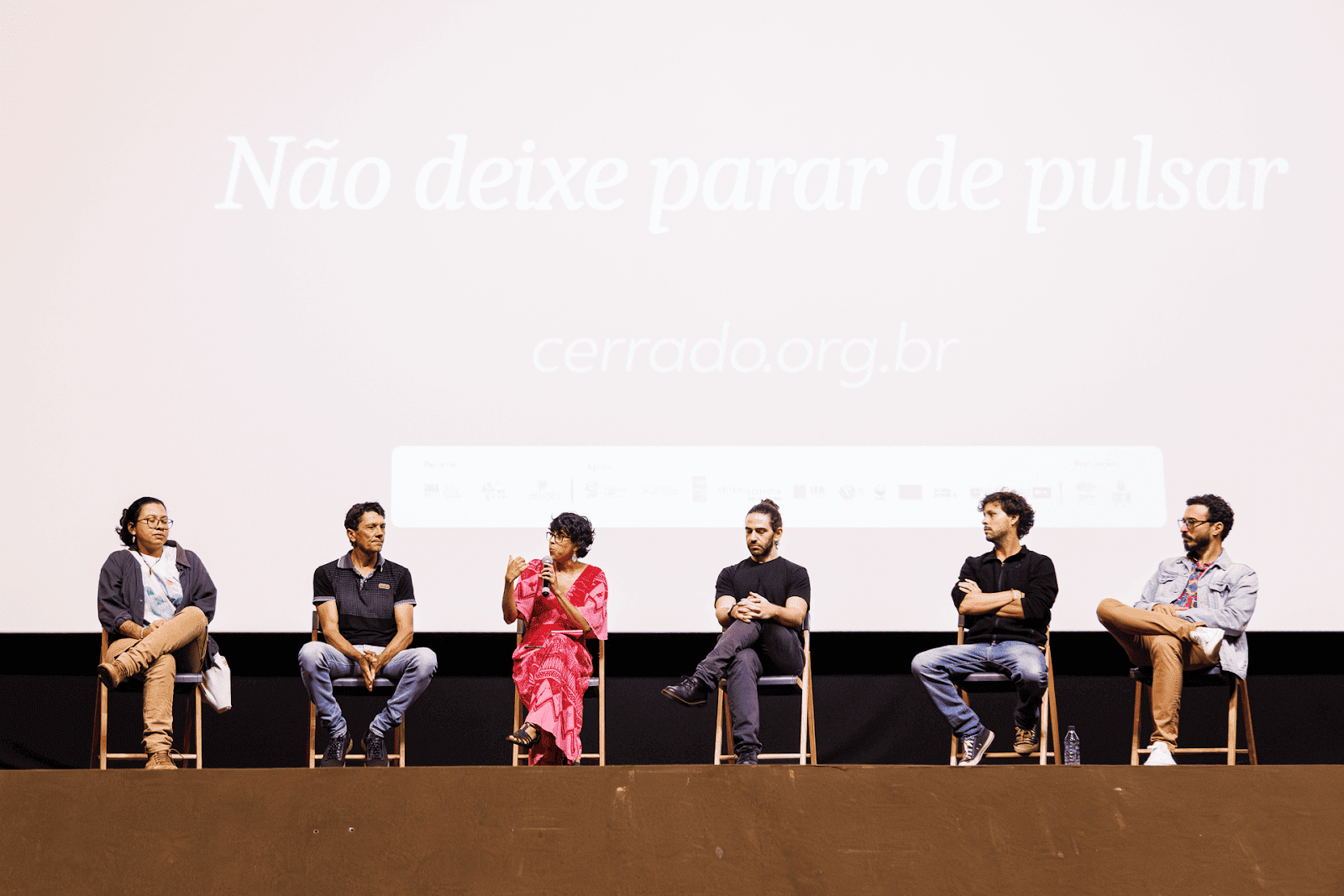 O evento reuniu os diretores Luiz Felipe Silva e Fellipe Abreu, além de convidados que protagonizam a luta pela conservação: Taynara Moraes, pantaneira de Bonito (MS), e Denervaldo Silva, fecheiro de pasto da Vereda da Felicidade, no oeste da Bahia — ambos retratados no documentário.