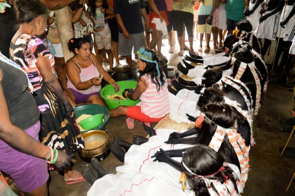 Um outro ritual que foi afetado pela degradação ambiental foi a Festa da Mandiocaba. “O fogo devastou a mata ciliar e acabou com um caranguejo muito importante utilizado no ritual da Madiocaba, que é um dos principais da nossa cultura”, conta Cosme Alves. No entanto, complementa José Domingues Neto, “com esse trabalho pretendemos conscientizar as futuras gerações, diminuir essas queimadas, recuperar a floresta e fortalecer a cultura. Nosso principal objetivo é proteger e preservar o território, pois precisamos da floresta e dos animais para sobreviver e manter nossa cultura viva, para o bem viver das nossas comunidades”.