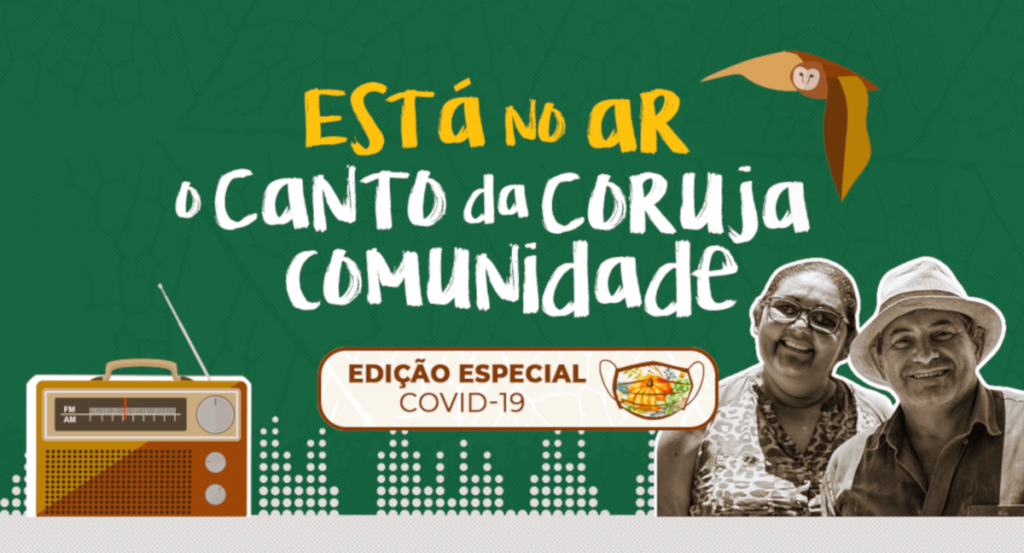 O Canto da Coruja Comunidade é desenvolvido pelo Instituto Sociedade, População e Natureza (ISPN) com apoio da Rede de FIlantropia para a Justiça Social (RFJS). Os programetes, de três minutos cada, circulam pelo Whatsapp, rádios comunitárias e mídias sociais da organização e parceiros. São essas plataformas que conseguem dialogar melhor com as populações, além de possuírem maior potencial para disseminar o Canto, fortalecendo a democratização do acesso à informação.