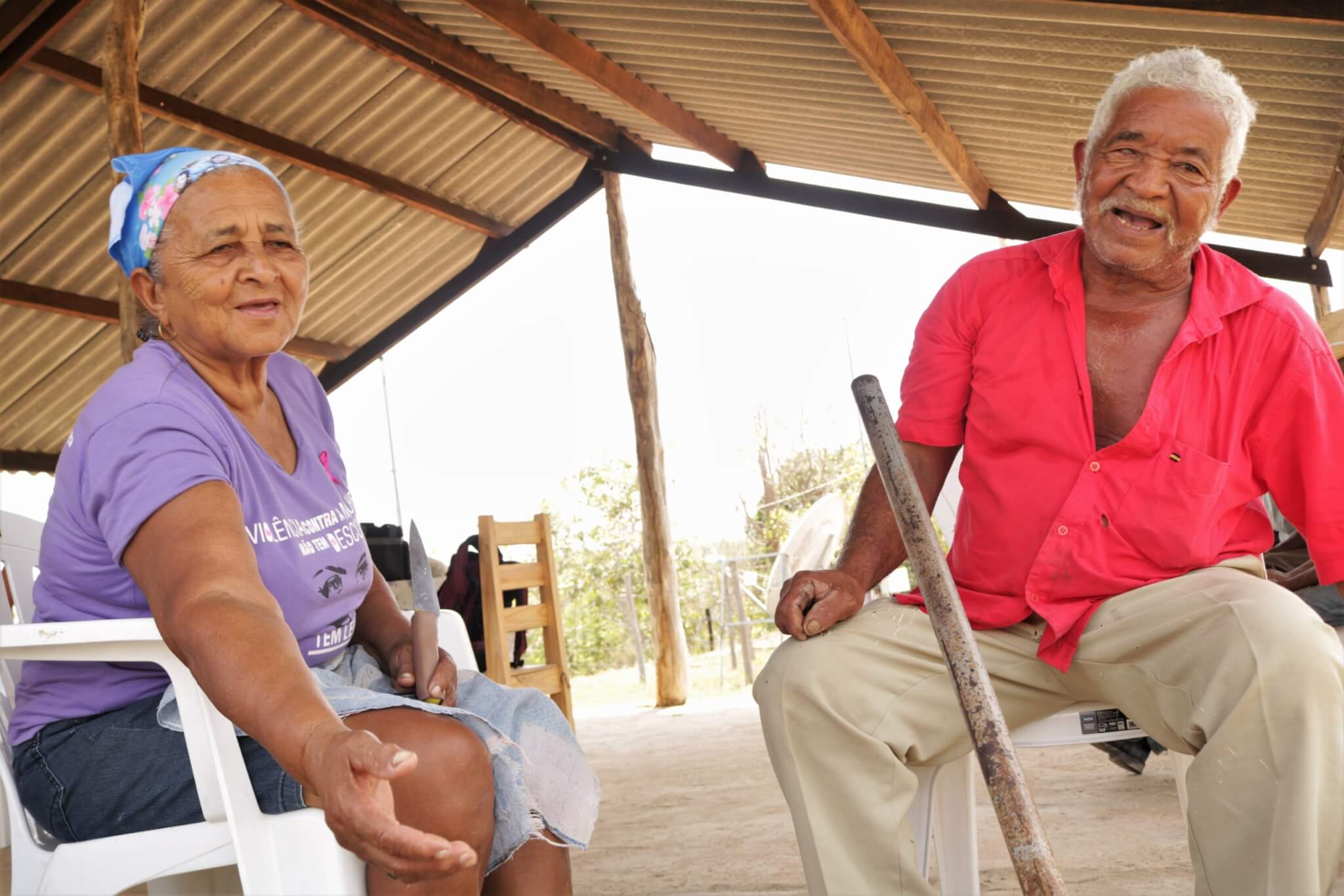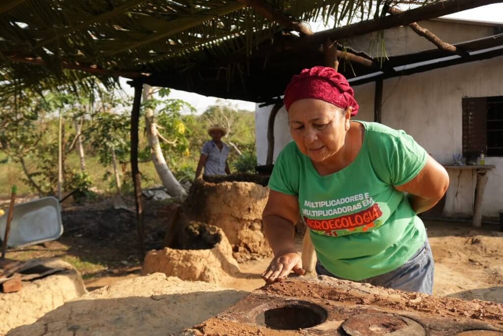 Vestindo uma camisa com a frase “Multiplicadores e multiplicadoras da agroecologia”, Miguelina argumenta que, apesar de “agroecologia” ser uma “palavra muito bonita” e nova, é uma prática antiga da comunidade tradicional, só que antes não levava esse nome.