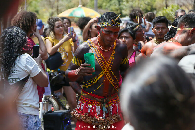 A mistura de culturas também fez parte desse dia. O grupo percussivo Vivendo & Batucando embalou e deu potência ao ato, acompanhado de um boneco de perna de pau do lobo-guará do grupo Faz de Conta, de Uberlândia, MG. Falas políticas ainda exaltaram a importância em firmar um olhar pelo Cerrado, que já perdeu quase 50% de sua vegetação nativa. “Estamos aqui não só para celebrar o Cerrado, mas para mostrar que ainda há muito o que fazer para proteger nosso bioma, e a união de tantas organizações e movimentos aqui presentes é fundamental para isso. Estamos aqui para conscientizar toda a população sobre o comprometimento com o Cerrado e para que todos possam olhar para ele”, discursou Sandra Braga, do Quilombo Mesquita/GO e diretora da CONAQ.
