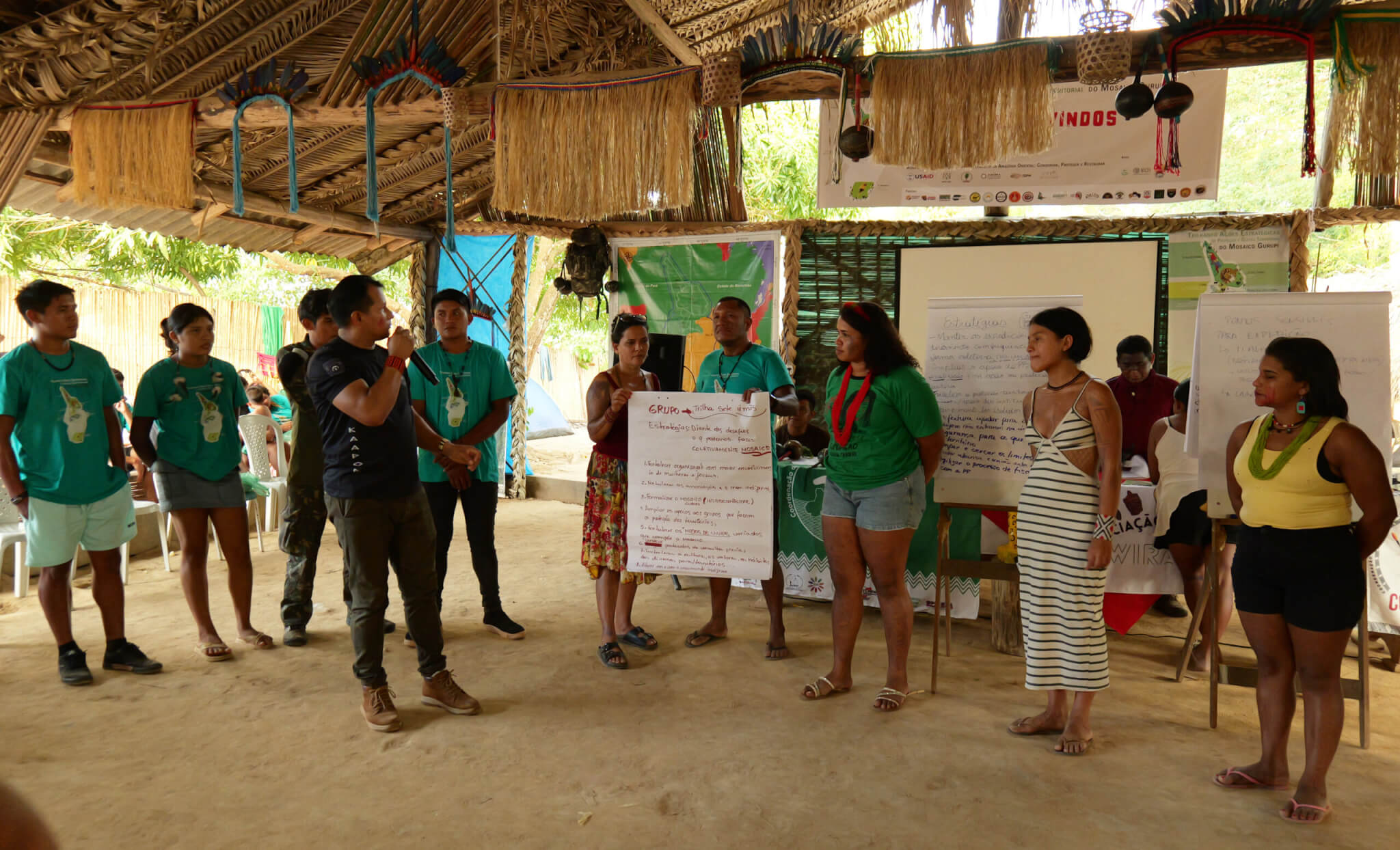 As discussões também incluíram o compartilhamento de estratégias locais de defesa territorial. O povo Ka’apor, por exemplo, implementou a ocupação dos limites de seu território e fundação de novas aldeias como forma de conter invasões.