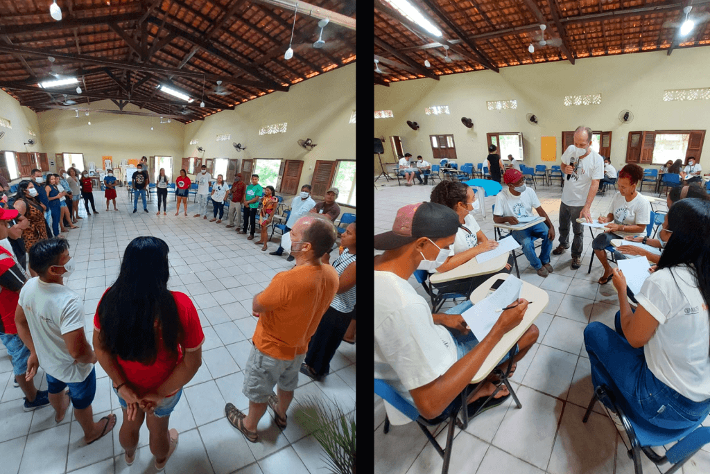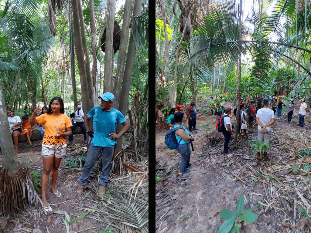 Os/as cursistas tiveram um dia de campo na Terra Indígena Rio Pindaré (MA), onde conheceram de perto diversas experiências de recuperação ambiental, gestão e proteção territorial indígena. Foram recebidos pelos Guardiões da Floresta, brigadistas e grupo de mulheres Wiriri Kuzá Wá. Esses três coletivos compõem a “tríade” da gestão territorial da TI Rio Pindaré, cujas ações são articuladas pela Associação Indígena Comunitária Mainumy.