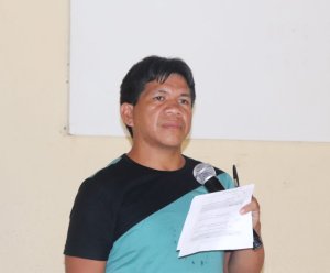 Antônio Guajajara durante apresentação dos trabalhos entre módulos. Foto: Andreza Andrade/ISPN