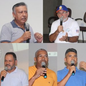 Painelistas convidados. Da esquerda para direita: Walter Mueda, Nonato Moraes, Amadeus dos Santos, Nilton Carlos e Celso Barros.