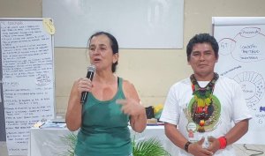 Eloísa Mendonça do ICMBio e o cacique Antônio Wilson da Associação Indígena Wirazu. Foto: Andreza Andrade/ISPN