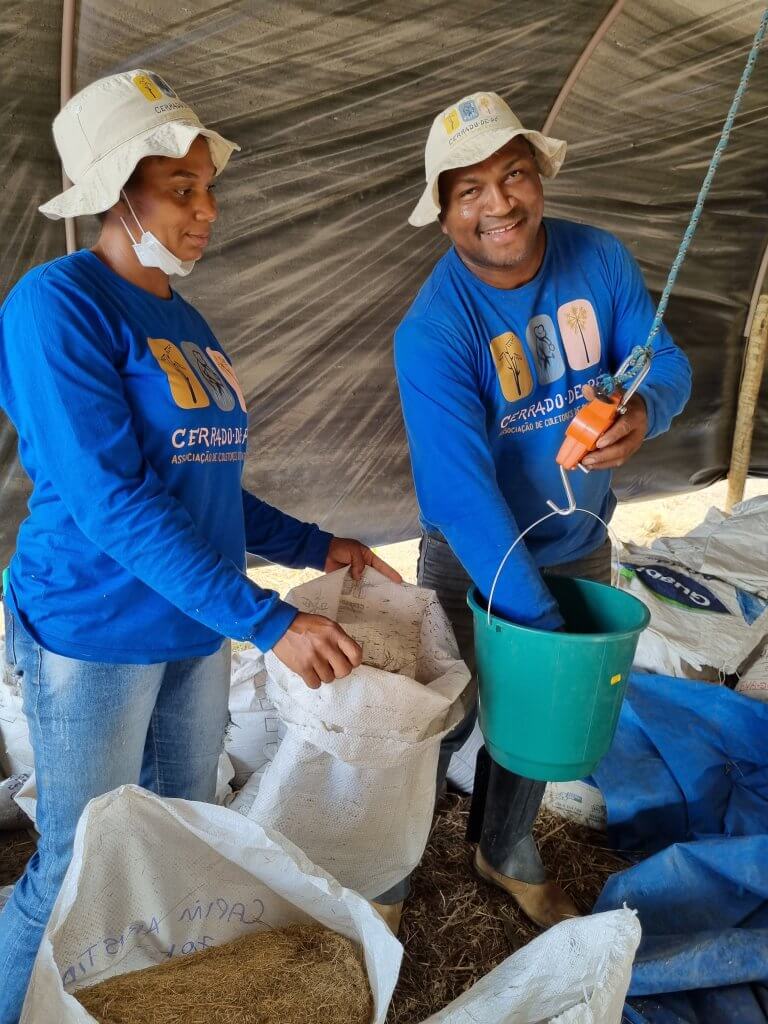 O trabalho de coleta de sementes promove inclusão social e gera renda à população local, além de contribuir com a restauração ambiental. Em 2023, foram coletadas 27 toneladas de sementes e, para 2024, “a meta é chegar a 30 toneladas”, afirma Claudomiro. As sementes são variadas: de árvores nativas mas, também, de capim (gramíneas), arbustos e ervas, estas últimas características da fitofisionomia cerratense.