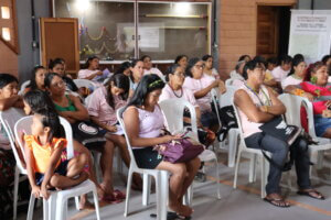 Durante a Campanha, os grupos e a comunidade discutiram temas ligados à relação do povo Guajajara com o seu território, que englobam proteção, reflorestamento, crise climática e saúde indígena. Foto: Ariel Rocha/Acervo ISPN.