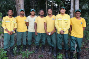 Uma brigada comunitária pode ou não ser voluntária e é composta por pessoas que têm vínculo com o território e que atuam no local em que vivem ou onde desenvolvem atividades de subsistência. É o caso da brigada Guajajara, na TI Caru, no Maranhão.