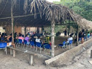 Com o objetivo de debater sobre a saúde da mulher Guajajara e compartilhar saberes entre mulheres indígenas de diferentes territórios como forma de fortalecer o corpo, o espírito e a terra, aconteceu o primeiro Encontro Saúde da Mulher Indígena Guajajara na Aldeia Januária, na Terra Indígena Rio Pindaré (Maranhão), no mês de julho. O evento reuniu cerca de 80 mulheres indígenas dos povos Guajajara e Awá, além de profissionais da área da saúde, como médicos, enfermeiros e agentes de saúde, e lideranças indígenas, entre elas caciques e pajés. A ação faz parte de um conjunto de atividades dentro do Subprograma Saúde, no âmbito do Plano Básico Ambiental – Componente Indígena (PBACI), implementado pelo ISPN.