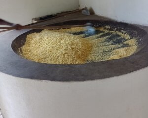 Produção de farinha é feita de maneira comunitária pelas famílias quilombolas nas Casas de Fabricação.