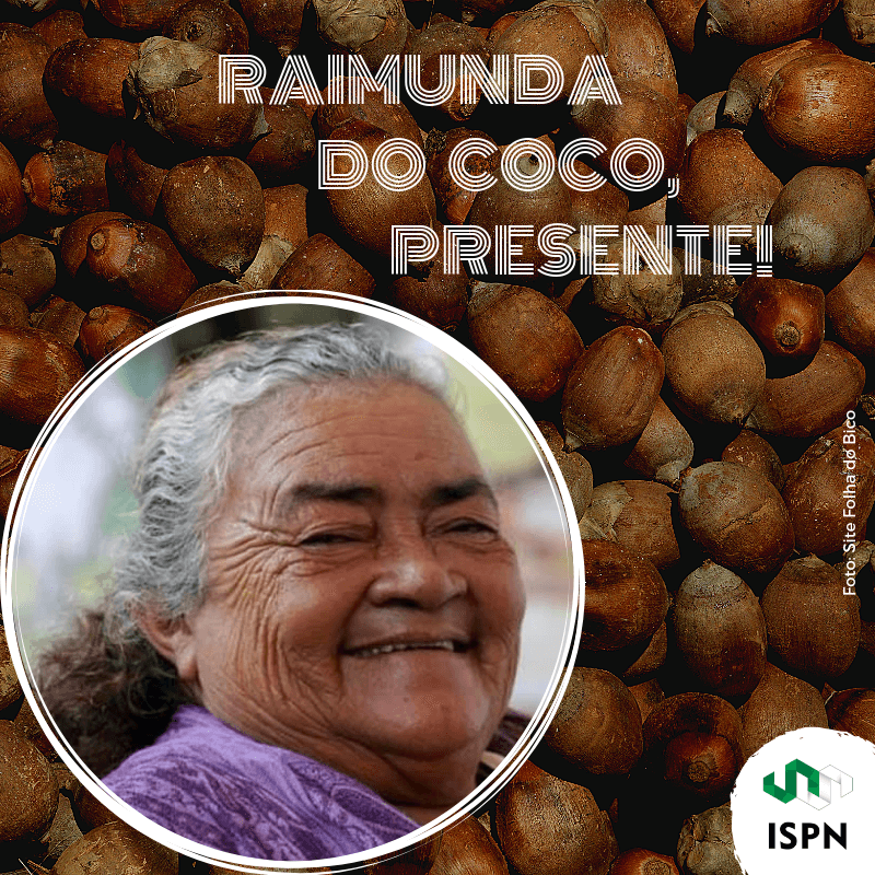 Nós, do ISPN, reconhecemos a importância de Raimunda para o fortalecimento de projetos com foco no desenvolvimento socioambiental, especialmente aqueles que buscam o protagonismo das mulheres. Entre os anos de 2016 e 2017, essa líder comunitária atuou conosco no empoderamento econômico e na melhoria da qualidade de vida das trabalhadoras rurais do Bico do Papagaio, por meio do projeto com a ASMUBIP. Com ela, aprendemos sobre força, sabedorias ancestrais e a beleza de transformar seu modo de vida em instrumento de luta pelas e pelos agroextrativistas. Sua voz entoa no ritmo de conquistas por políticas e direitos. Agora, ela faz parte das simbologias de força das que aqui ficaram. Do babaçu, não se perde nada. Daquela que quebrava o coco, construía lutas e despertava mulheres, não se esquece nada. Dona Raimunda do coco, presente!